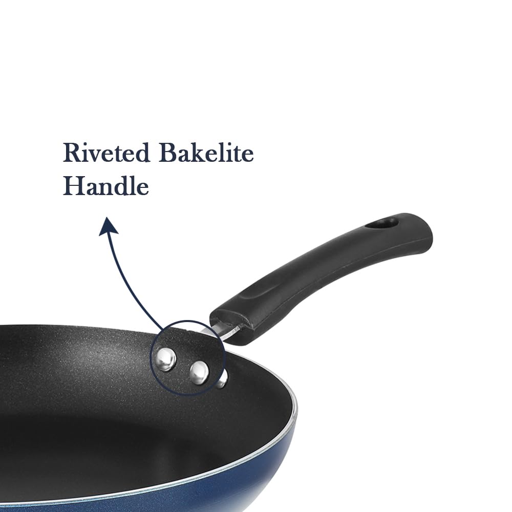 Vinod non-stick frypan is great for making delicious omelettes, sautéing vegetables, shallow frying and more.The non-stick coating ensures that you use minimal oil. The thick aluminium helps you cook food without burning .The handle is heat resistant and has three rivets for better grip. As it is a non-stick frypan, the oil does not form any hard layer, making it easy to clean it. A soft sponge with some soapy water is enough to get the greasiness off. Additionally, because of its scratch-resistant coating, you can use metal spoons without peeling the external coating off. This frypan is only gas stove compatible.