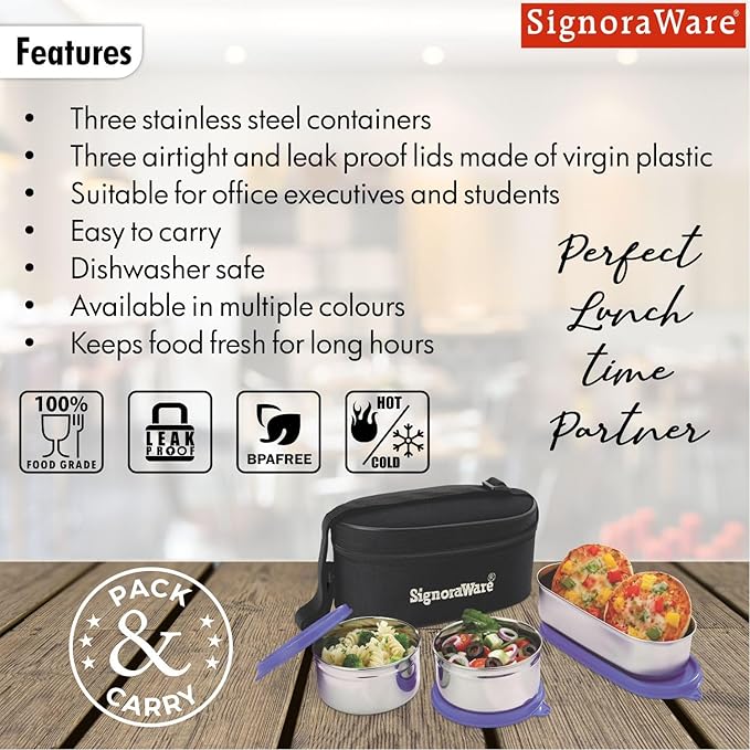 Keep your meals fresh and warm with this superior quality stainless steel insulated lunch box set. Designed with leak-proof and spill-proof containers, it ensures mess-free portability. The compact size fits easily into school bags, handbags, or briefcases, making it perfect for office executives and students alike. The unique insulated carry bag maintains food warmth for hours, while the non-cracking, durable stainless steel body guarantees long-lasting use. Ideal for everyday meals at school, office, or travel.