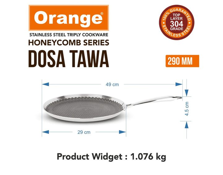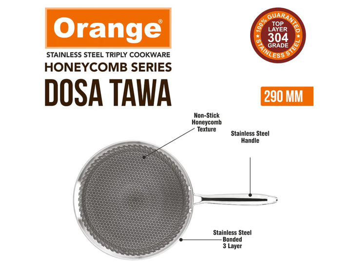 Orange Triply Stainless Steel Honeycomb Non- Stick Dosa Tawa/Uttapa Tawa With FREE Knife Set worth Rs.450 on PREPAID Order