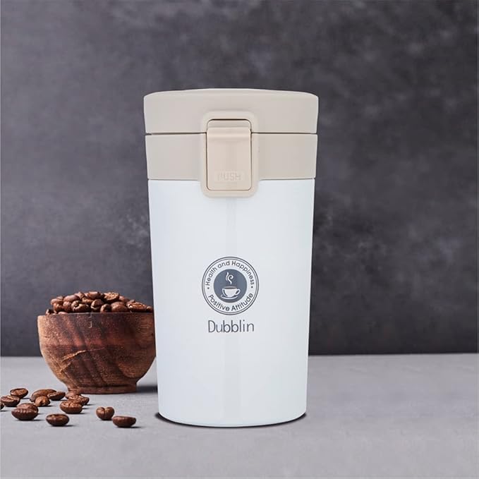 DUBBLIN Frappe Stainless Steel Tea Coffee Mug Double Wall Vacuum Insulated Travel Mug with Leak Proof Lid, Wide Mouth Tumbler, Thermo Flask Keeps Hot 6 Hrs, Cold 12 Hrs
